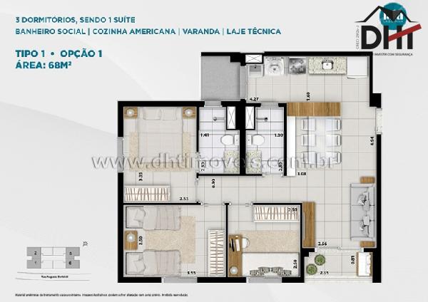 até 68m² de área privativa