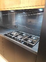 Bancadas em porcelanato, pia dupla, cooktop